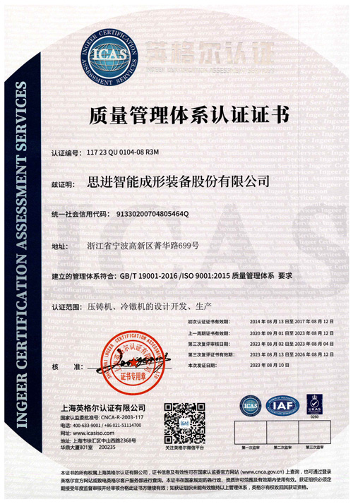 ISO9001:2015質(zhì)量管理體系證書(shū)