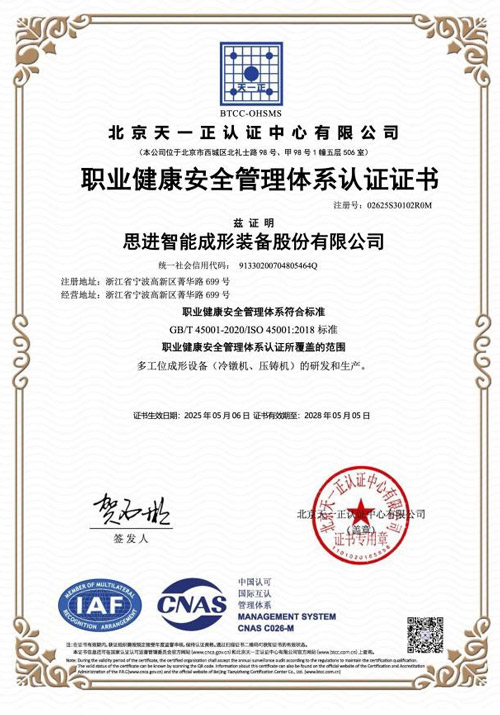 職業(yè)健康安全管理體系認(rèn)證證書(shū)